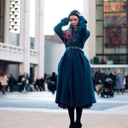 When choosing a dress and skirt that will be worn under a coat without a collar, you should pay attention exclusively to straight styles and skinny models. The winning options are a pencil skirt, a bell skirt, a straight dress. Their length cannot extend beyond the hem of the coat.