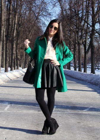 - coats look spectacular with contrasting turtlenecks and shirts in combination with short skirts or mid-length skirts;