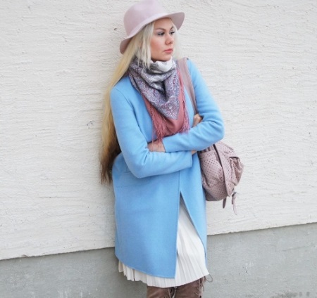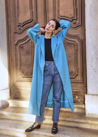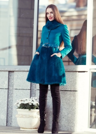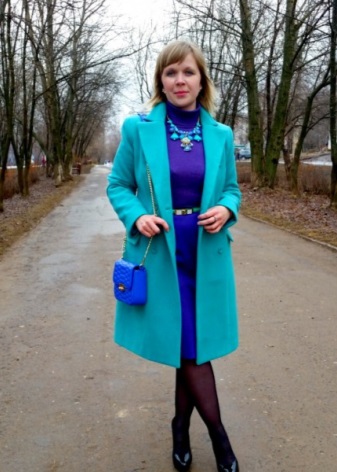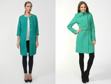 Coats of turquoise color are unpretentious in the selection of style and image, as they are perfectly combined with completely different wardrobe items: