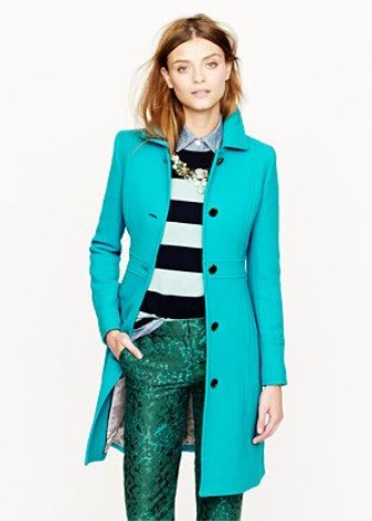 - slender fashionistas should pay attention to fitted turquoise-colored coats that perfectly accentuate the waist line and visually make it narrower and more elegant;
