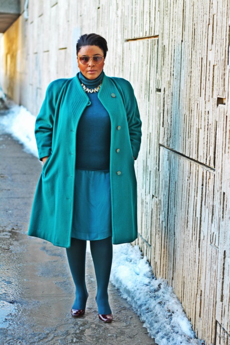 - turquoise coats are perfectly combined and emphasize the graceful figure of a fashionable woman in a cocktail or short dress of various colors;