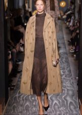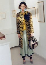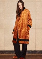 Pajama style is the novelty of the current season. A distinctive feature of this coat is its resemblance to a home bathrobe. It does not have fasteners; it is held on the figure by a belt.