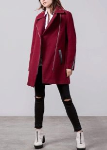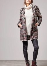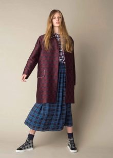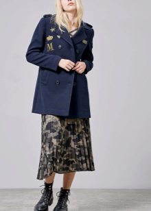 The coat is a universal thing, it can be worn with completely different wardrobe items.But in any case, the choice of clothing will depend on the style of the coat.