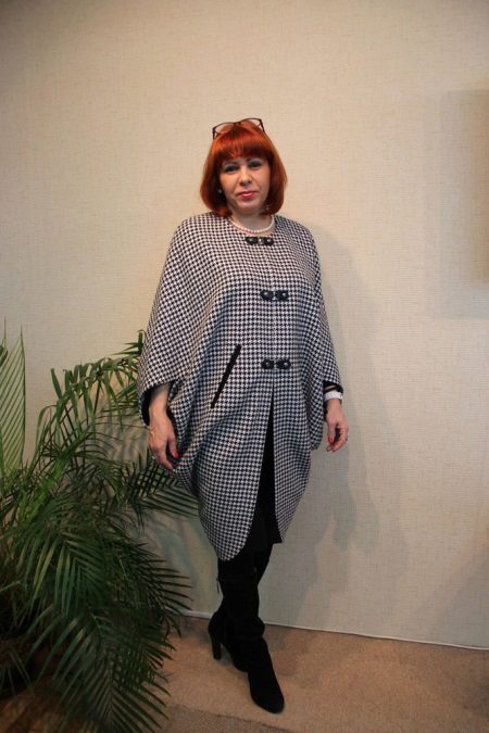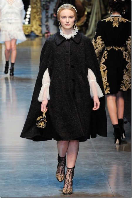 Coat caps are creative and very unusual outerwear. Cape translates from English as a cloak. They are a short coat, loose trapezoidal cut. Have a wide sleeve or slots for the hands.