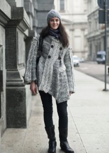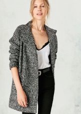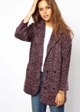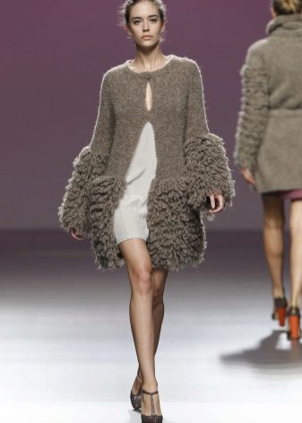 Wool is often added to yarn. The knitted coat is stylish and warm. Boucle does not combine with volumetric types of weaving at all, so the simplest knitting method is used. Many note that a knitted coat, due to its texture, looks elegant.