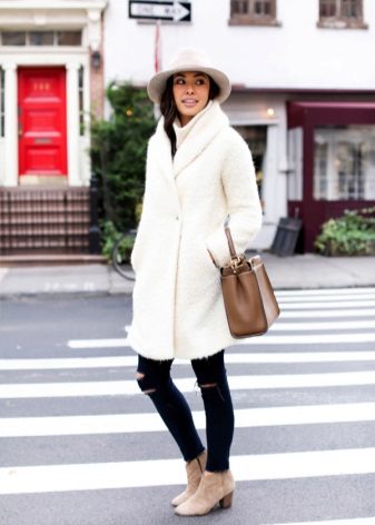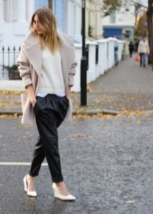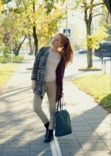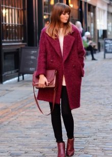 For an official event, under the coat, you can pick up wide-heeled ankle boots and ankle boots.