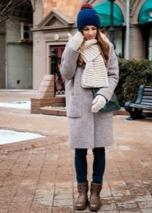 Of hats, a hat with wide hard brim or a knitted hat in a sporty style will be the perfect pair with a boucle coat. To protect against frost, you should buy a wide stole or scarf snood.