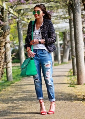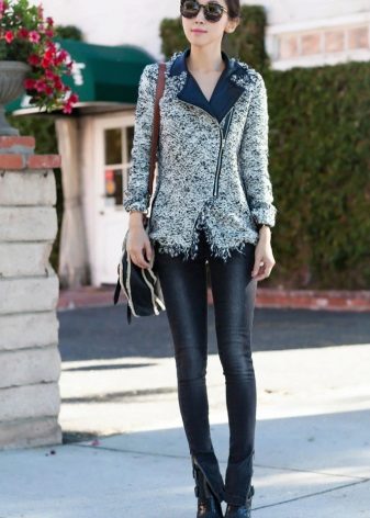Outerwear goes well with casual and sporty styles. Under tight jeans or boyfriend pants, you can choose a sweater and ankle boots. A mischievous, not without elegance, light image will appear.