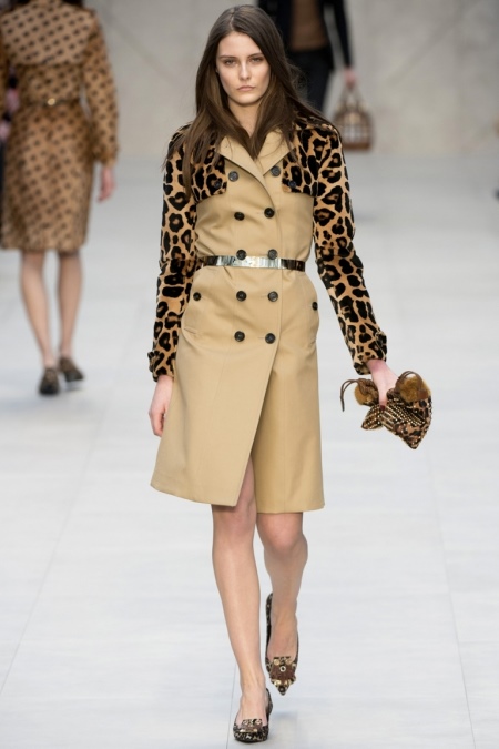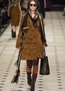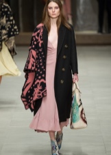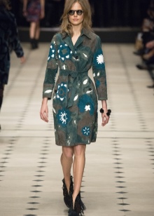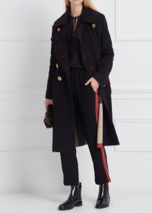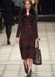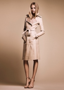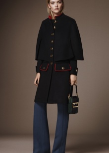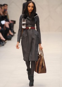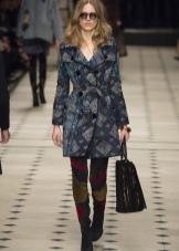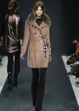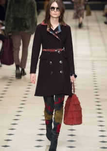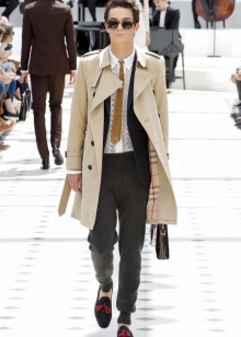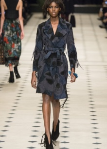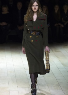 A lot of attention is paid to the color palette. Traditional beige has become a classic of the brand and adorns each collection. A beige gabardine trench coat often has warehouses and hats in front. Decorative elements in the form of pats on cuffs, shoulder straps, round buttons and edging with threads of red and black mix are made in the traditions of the country.