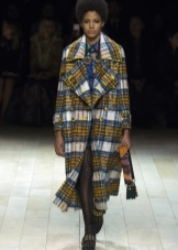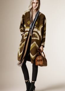 An elongated coat-dressing gown coat is often made in mosaic prints. They can be of several compositions: the trend of the season is the combination of blue, yellow and green in the mosaic. No less popular is the red-white pattern and jacquard themes from gray and pink vertical stripes.