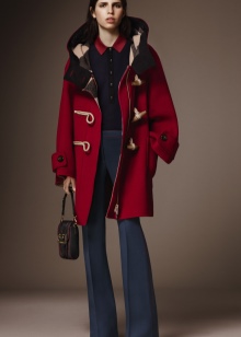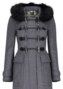 Semi-adjacent versions of Barberry Brit duffle coat have a stitched placket and a clasp on long decorative buttons, fastened with contrasting leather inserts. The fantasy clasp with the help of a cord and buttons becomes a highlight of products.