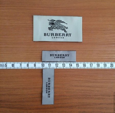 - The real Barberry range has beige tear-off cardboard labels that are fastened with reinforced black thread. British woven labels in light beige with black woven Barberry logo. The second line on the label indicates the composition of the material, and the other two indicate the country of origin.