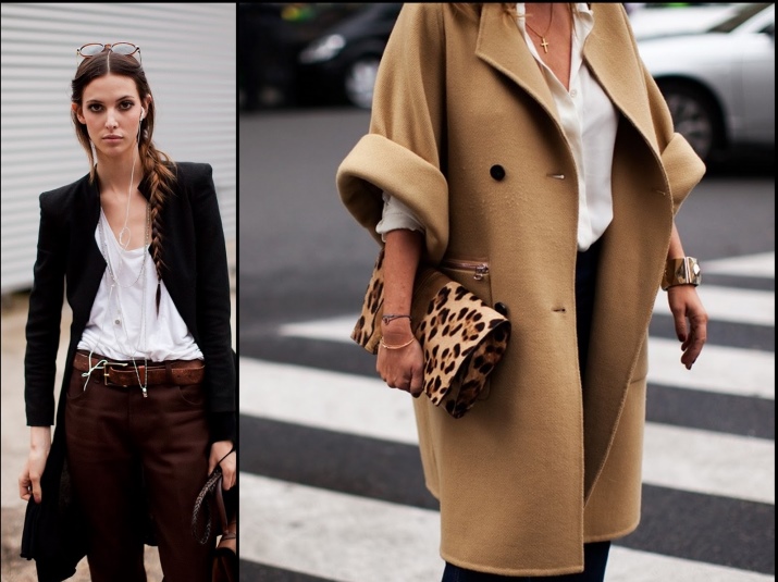 Some oversized have a double-breasted clasp and a length up to the level of the thigh line. This style goes well with a classic skirt above the knee.