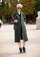 Also, boots with thick heels with aggressive (or even tractor) soles look great with a coat, emphasizing the urban style of an active and mobile fashionista. Regular sneakers of classic colors and high sneakers with a slight rise harmonize with this outerwear.