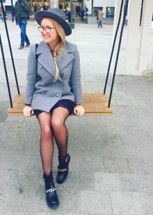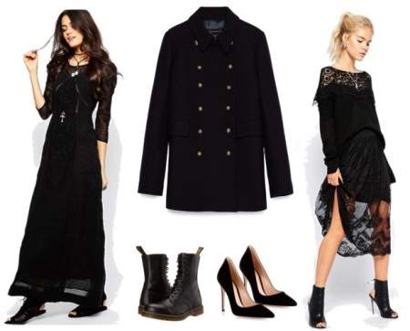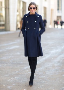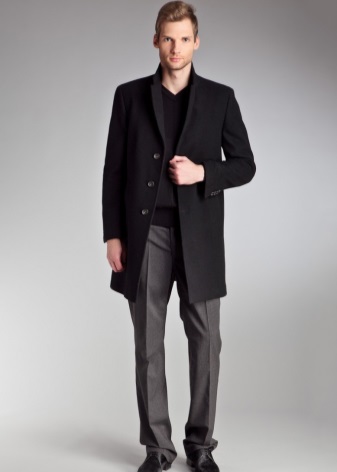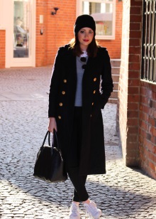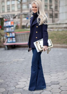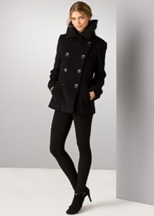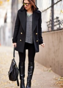 - with narrow gins, trousers, leggings, skinny or leggings of classic black color, if we are talking about a coat of a pea-jacket of a free cut;