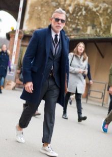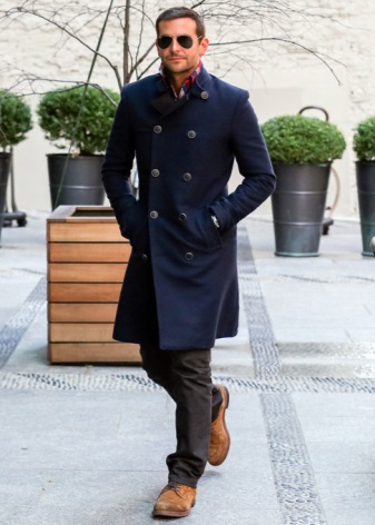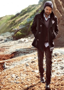 Men will feel confident and solid, combining a pea coat with matte or patent leather shoes with pointed toes or boots made of natural materials with lacing.Sneakers and boots with a thick sole in contrasting colors in a duet with a pea coat will not only allow the man to look stylish and modern, but will also create a rather vivid image.