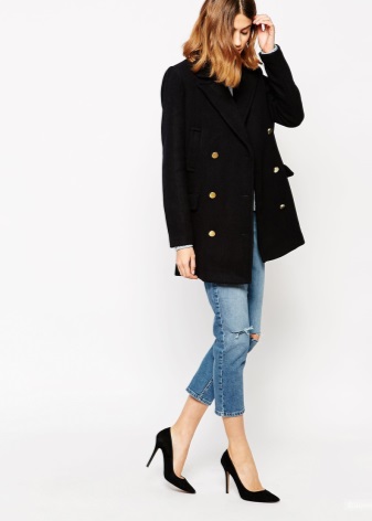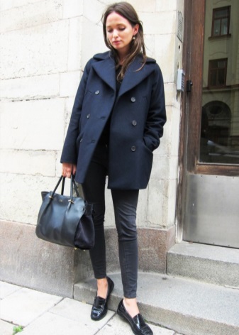 - with any clothes in an urban style, since a pea coat looks quite stylish and modern and fits perfectly into city landscapes;