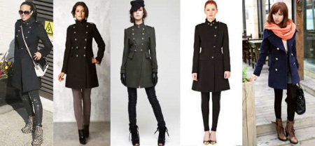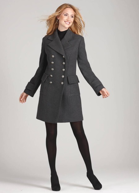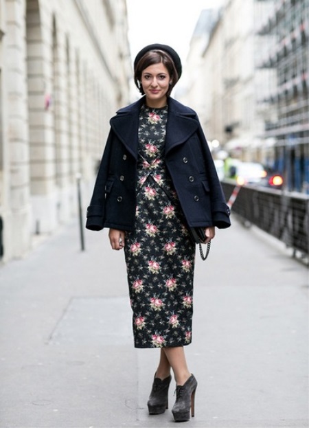 With women's coat pea jackets, shoes with a thin heel with a pointed toe or high boots with medium and high heels look quite feminine.
