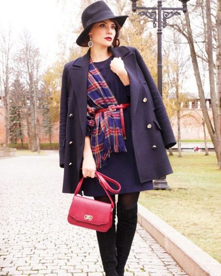 An interesting look is a duffle coat and a wide scarf in a bright cage.