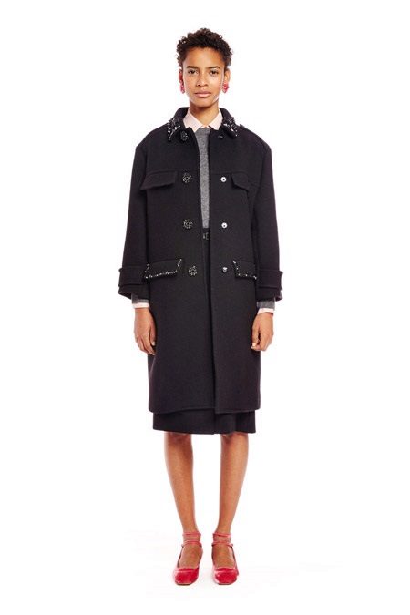 A long black pea coat with gold buttons from Chloe, a cropped version from Michael Kors and a very short one from Nina Ricci.