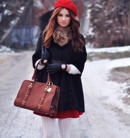 Knitted bulk beret of large openwork knitting (from yarn or fur) goes well with a straight long coat and will give you not only style but also comfort. Suitable for women and girls with a round face, provided that they will not push it on the forehead, but moved back.