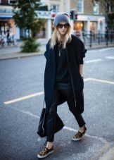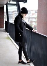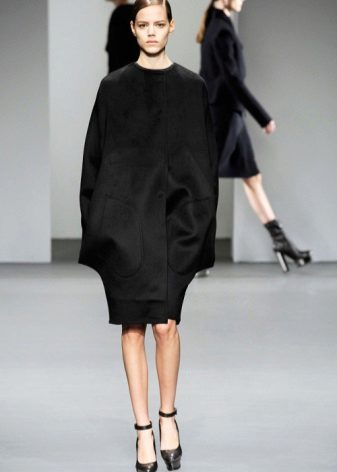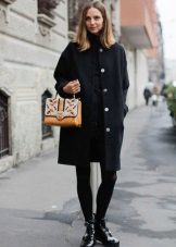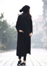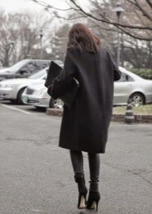 Overcoat coat, free and voluminous, will be relevant, it sometimes looks like a hoodie. The length is just below the hips, and of the additional elements are used belts, sewn pockets, hoods, large collars. With the right accessories, the baggy coat will look very stylish and bright on the young lady, even taking into account the black color of the product. Another popular style in youth fashion is the “cocoon”, when the coat is wide in the waist and hips and then narrows.