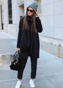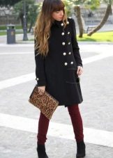 There are hardly any restrictions on combining various clothes with a coat. You can wear everything under it: tops and T-shirts, blouses and shirts, sweatshirts and sweatshirts, knitted sweaters and silk tunics.