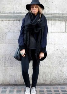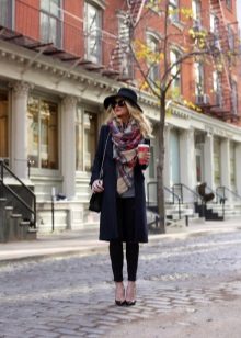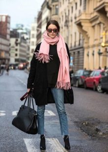 Scarves can be both knitted and almost knee-length, and graceful shawls, stoles, silk scarves. You can wear a headscarf as a headdress with a classic coat. Scarves that are contrasting in color are best combined with suitable hats or gloves.