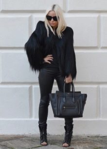 As for the materials, leather and faux fur come first. The coat can be made of them completely or only partially, for example, sleeves.