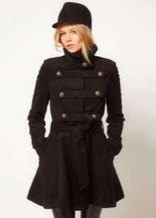The military style has its own characteristics. It can have hoods and large pockets, themed stripes and metal details. And in general, the appearance of such a coat resembles a military coat.