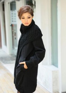 It is important to have a collar, so that it can be classic or high resistant, asymmetrical. Models with long open collars to the waist look spectacular. They can be made of other material, decorated with brooches. Knitted collar on sports models is popular. Fur collars made of natural or faux fur are not only of classic colors, but also unnaturally bright.