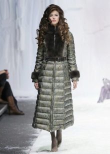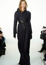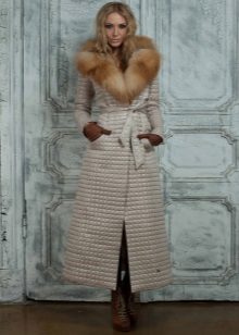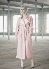 Often, without any fasteners, the coat is equipped with a beautiful fabric belt, which is made from the same material as the product itself.