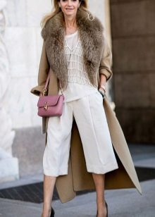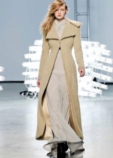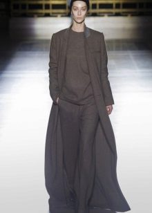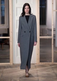 This coat model allows you to wear flared and wide leg pants, because under the long coat itself they will not be so visible and will not seem out of place.