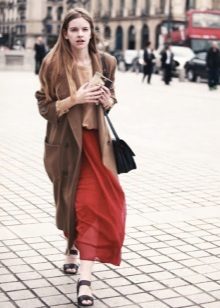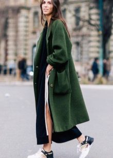 A straight-cut coat without a belt looks good with sports shoe models such as slip-on sneakers, espadrilles, elegant sneakers and sneakers. So the image will look everyday and without frills.