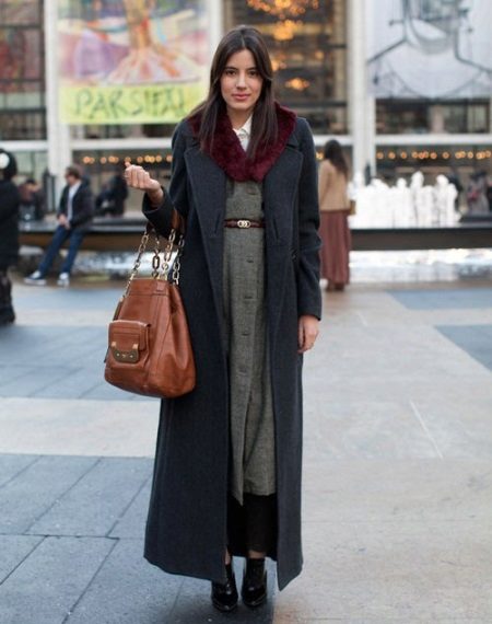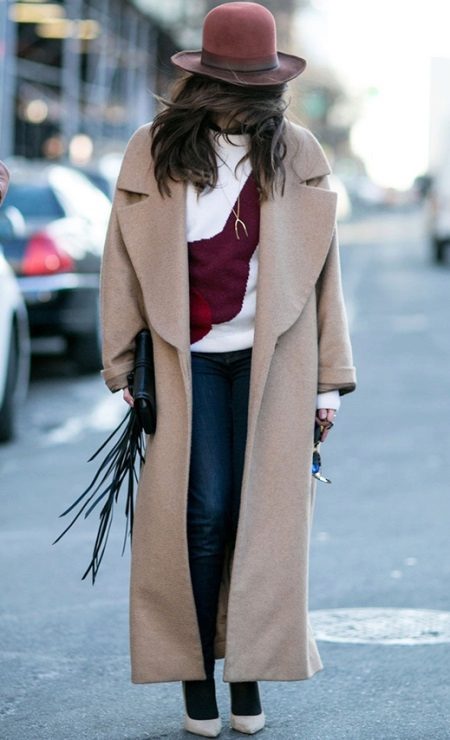 It is impossible to wear a long coat with anything and to be sure that the product will hide the entire outfit underneath. On the contrary, a long coat more than others needs a competent combination with other attributes of the wardrobe.