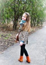 Dresses and sundresses, blouses, sweaters, shirts with jeans or pants are put on under the coat. Do not forget about warm tights that go well with skirts and shorts. As accessories, you can pick up a little fashionista funny handbags, colorful umbrellas, brooches, hair clips in the hair to match the tone of the coat.