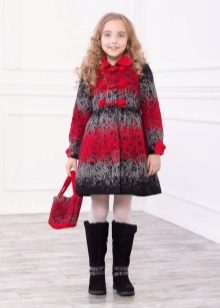 Depending on the weather, the coat can be worn with shoes, boots, long boots, and rubber boots. Knitted coats look great with ugg boots. It is definitely worthwhile to find suitable knitted scarves and hats, berets, headphones, hats so that the baby does not freeze.