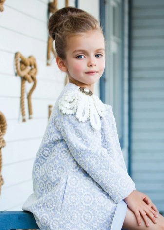 This year, a romantic and tender image is fashionable for children. To match this style, you should choose a coat of classic cut light (pink, beige, gray).