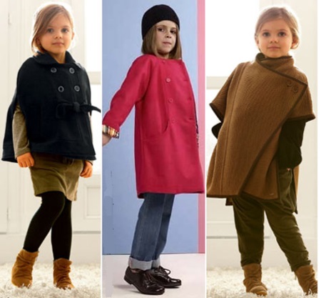 Children's duffles, coat-jackets, knitted coats - all of them are not rare on store shelves. You can find coat-capes and coat-dressing gowns, although they are not so widespread as other models, because due to the lack of fasteners they are less protected from the cold.
