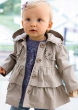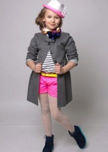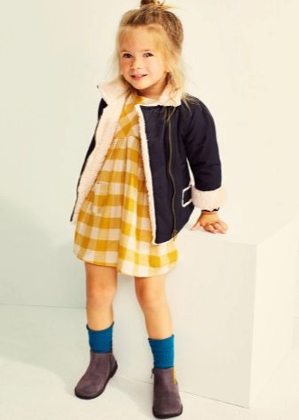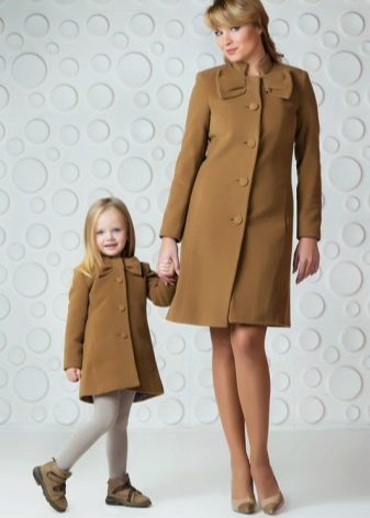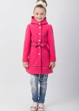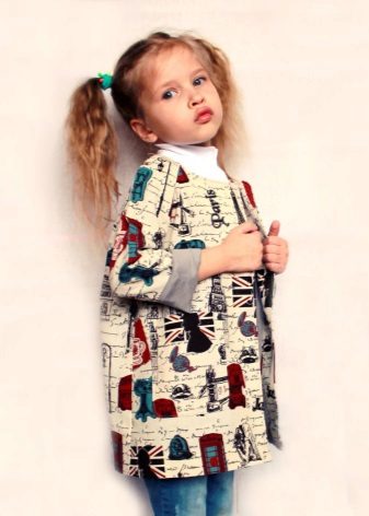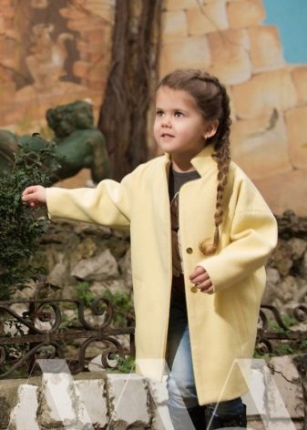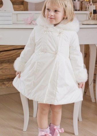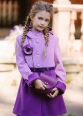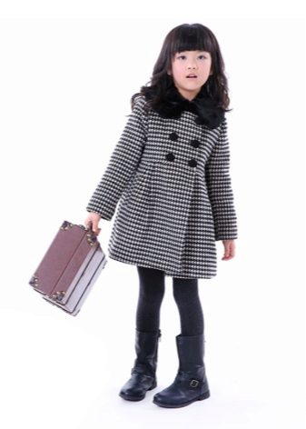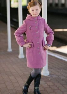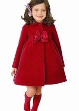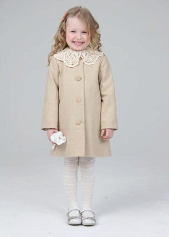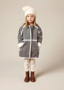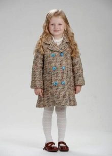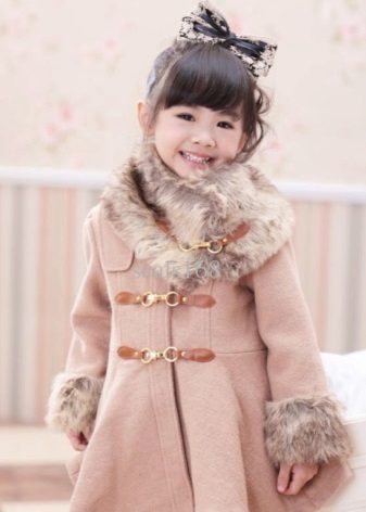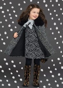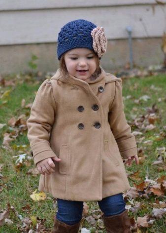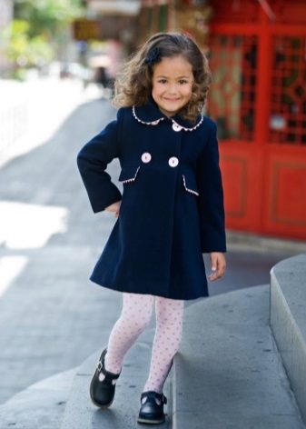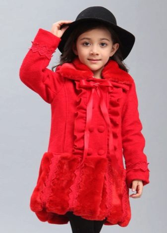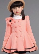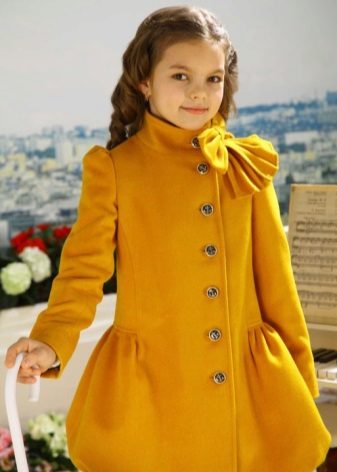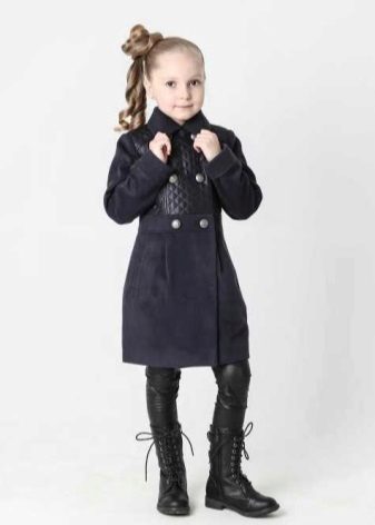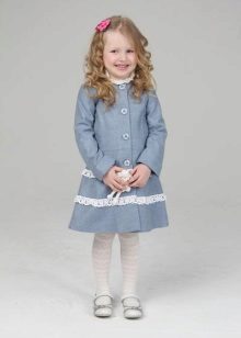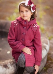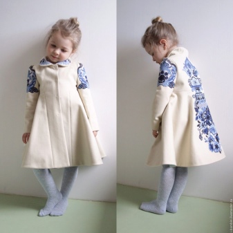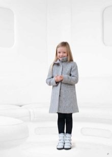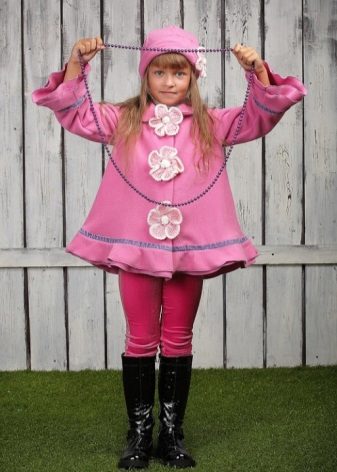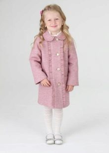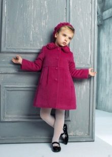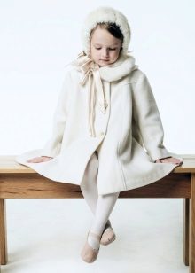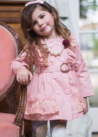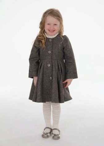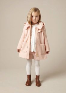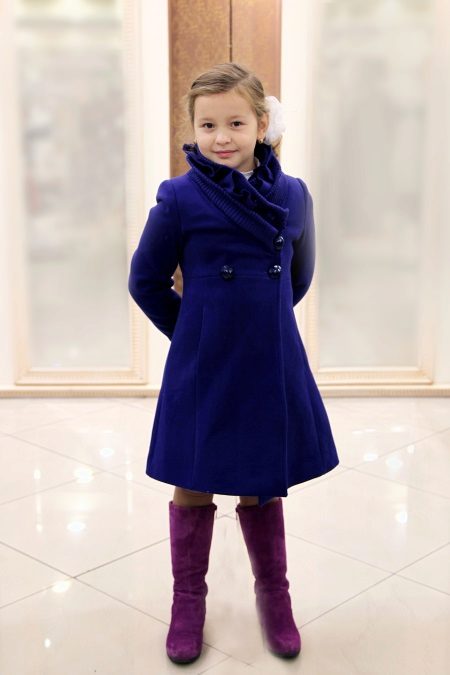 Children's coats, like adult models, are designed for a universal style in clothes. A girl can wear a coat for anything. The main thing is to choose shoes for the season. Under the coat you can wear a dress, jeans, pants of a classic cut. The coat is a removable wardrobe element; it does not stay indoors. Therefore, mom needs to consider the style of clothing of the child as a whole. If this coat is in a classic style and with drapery, then beautiful dresses with ruffles are best suited for it.