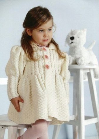 And what image creates, for example, a knitted coat? Knitted coats are comfortable, soft to wear. The durability of the model depends mainly on the practicality of the material (threads) and the density of knitting. The denser it is, the longer the thing will last. A light knit coat of delicate colors is perfect for little fashionistas.