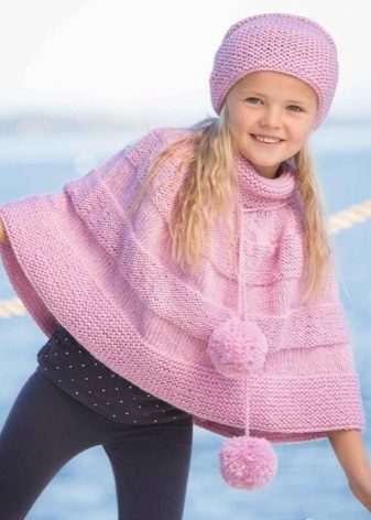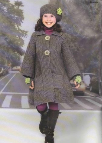 A little lady can walk in a knitted coat of a fitted or flared silhouette, short or medium length. Among knitwear, poncho coats or knitted warm wraps are used as coats. Additional decorative elements in the form of pockets, buttons, zippers only complete the image of a young fashionista.