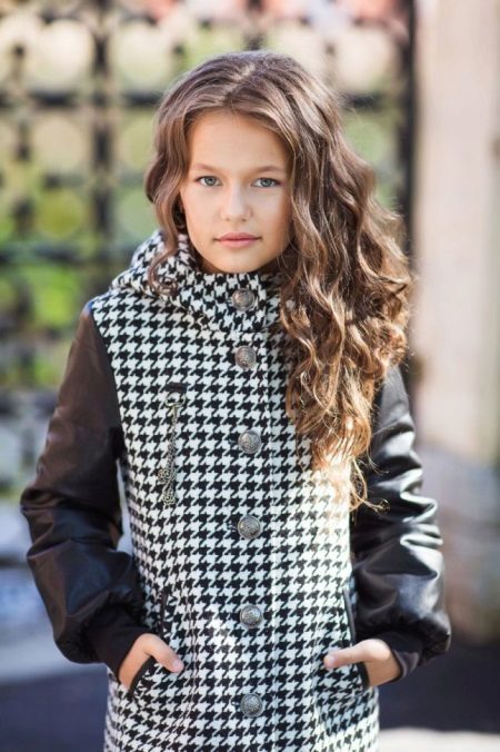For older girls, you can choose a combined model of a shortened type, in which the sleeves or other elements of the model are made of another material.