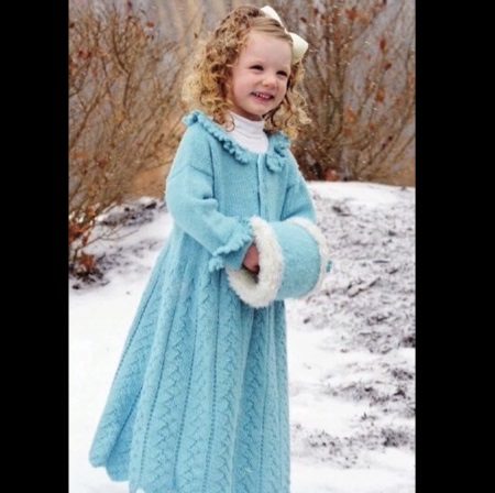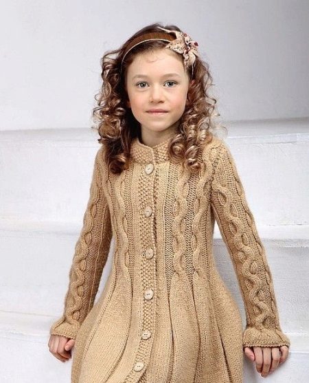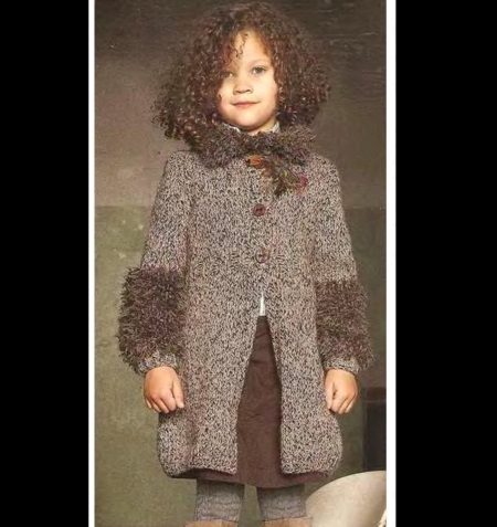 Children's knitted coat is one of the most elegant and delicate items in the wardrobe. A girl in a knitted coat will initially stand out among her peers. But only on condition that the mother was able to choose (or tie with her own hands) a suitable coat model. Here, too, have their own fashion trends. Knitwear for winter, spring or autumn can be made in a different style. The style of such a coat is similar to one of the styles of an ordinary tweed or cashmere coat.