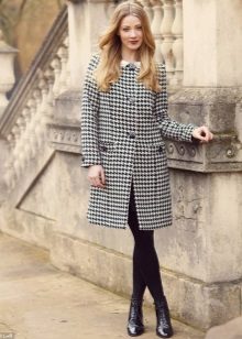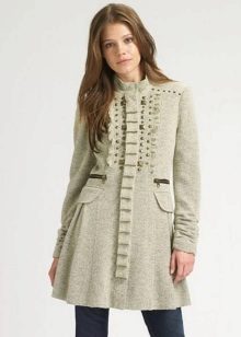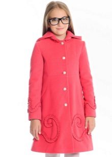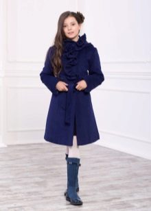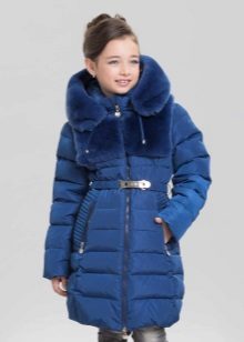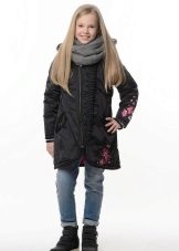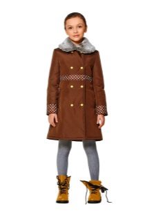 - ?If your child attends a school with a strict form, then you can look at the classic version, so to speak, "exit". Models are distinguished by an A-shaped or straight cut, as a rule, buttons act as a fastener, and a high collar excludes a hood. Such coats can be restrained shades - gray, blue, dark green, print in the form of a cage or a "goose foot" is possible.