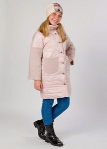 - The coat in casual style absorbed the advantages of both models listed above. They can be worn both with a classic school uniform, and with sportswear or casual - jeans and sweatshirts. These models have a straight cut, as well as more “adult” O-shaped, puffy silhouettes or an hourglass silhouette. Such options can be made of any fabric and combined with fur, knitted or leather inserts.