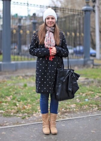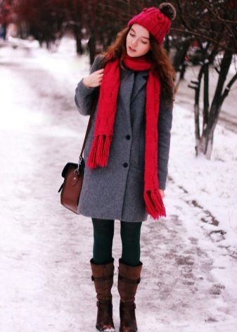 If you purchased a coat of a classic cut, then other details of the image should correspond to this. It is better to buy a hat, a scarf and gloves from the same series - of the same color or from a partner fabric, so that the entire set looks appropriate. Shoes in this case are also worth choosing classic - leather or suede boots in black, dark brown or blue.