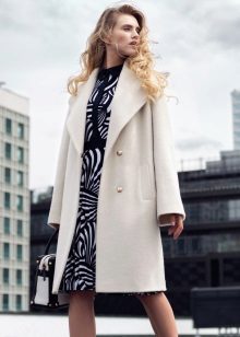 A more romantic version is based on contrast. It can be a coat of light shades, even a snow-white color, and a bright dress. The color of the handbag is best chosen according to the color of the dress.