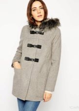 Duffle coat. Another find of English designers. The style of the coat is more suited to the sporty style. For these models of coats, simplicity of cut is characteristic, the presence of large fasteners or large buttons, hinged leather loops. Sleeve length - three quarters. Often models have a hood.