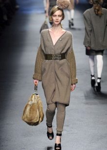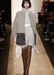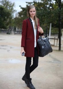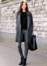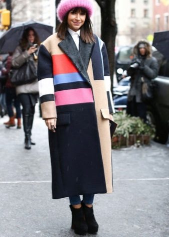Good fit allows you to combine the model with other things. True, the coat solo here, and the remaining elements of the wardrobe only play along with prima. As a result, you can get an eclectic onion. And in a set straight pants, jeans, fitted skirts are suitable for him. Dresses or trousers of free cut in this case are not appropriate. But, strangely enough, you can wear stiletto shoes to the oversized coat.